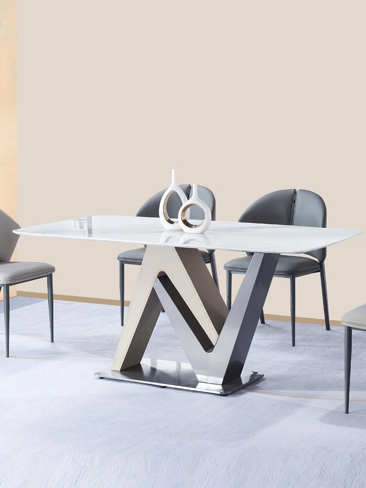 北欧風の軽奢大理石テーブル|モダンでシンプルな小型ダイニングテーブル|長方形・ステンレス製フレーム|おしゃれな家庭用食卓に最適!