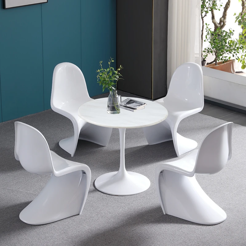 モダンでシンプルな会議テーブルセット - ホワイト塗装の個性的な小型円形テーブルとチェア、ビジネスミーティングや接客に最適!