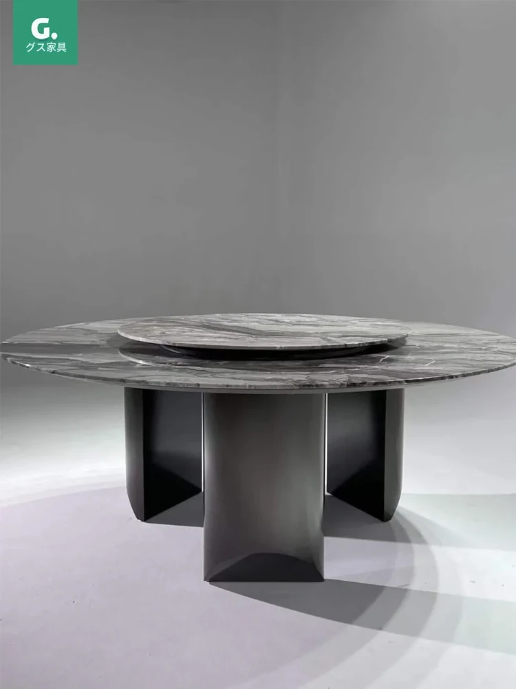 ヴィニスブラウン天然ラグジュアリー石製ダイニングテーブル - イタリアン・ライトラグジュアリー・円形・回転トレイ付き・モダンミニマル大理石食卓。家庭にぴったりのスタイリッシュな選択!