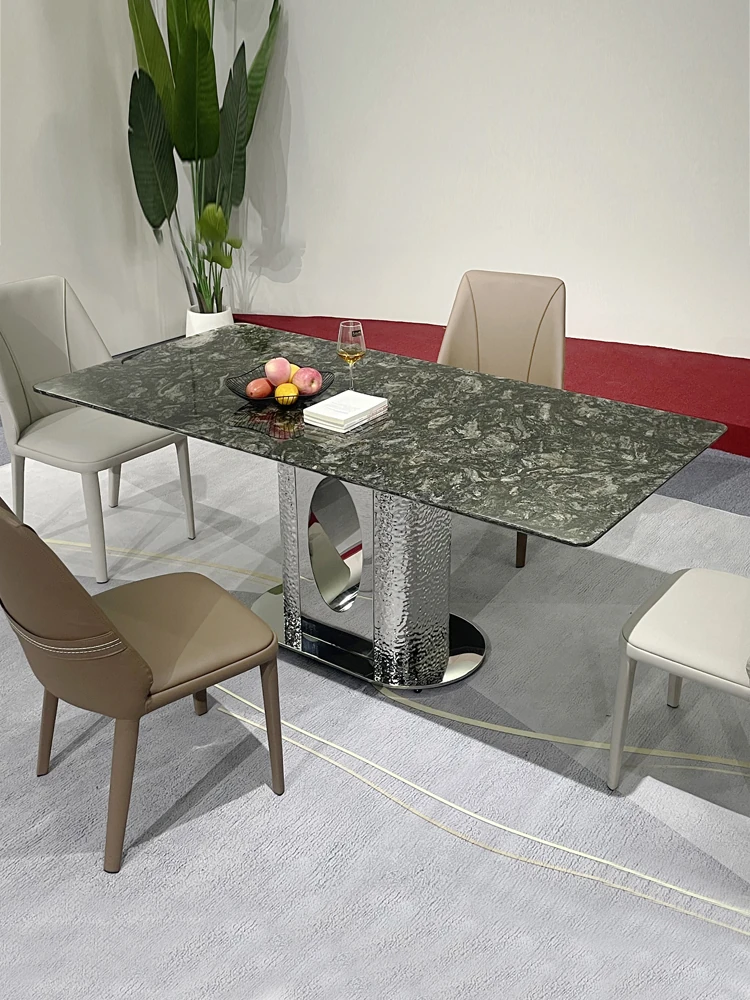 雲中エメラルド天然大理石ダイニングテーブル - 高級感あふれるデザイン、広々とした大サイズの長方形テーブルで、贅沢な食事体験を提供します。家族や友人との特別なひとときをお楽しみください!