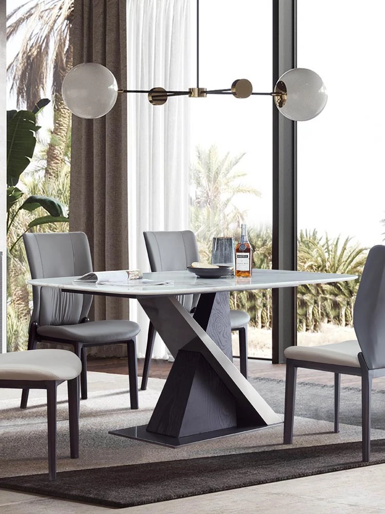 光沢のあるストーンボード製ダイニングテーブルセット|モダンでシンプルなデザイン|軽やかなラグジュアリー|小さな家でもぴったりな長方形の西洋風食卓で、食事のひとときを特別に演出します!