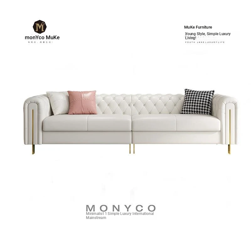 2025 New Italian Minimalist Genuine Leather Sofa for Small Living Rooms – Sleek Designer Elephant Ear Straight Sofa for Modern Spaces