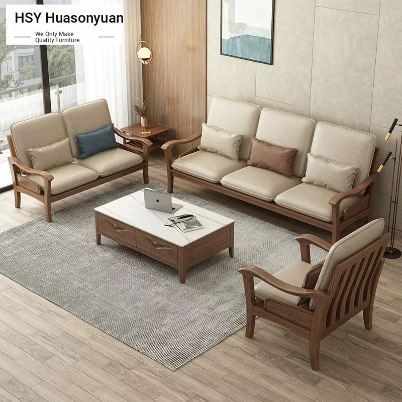 Modern Minimalist Chinese Solid Wood Sofa Set - Stylish Fabric Couch for Small Spaces, Direct Factory Sale for Contemporary Living Room Furniture