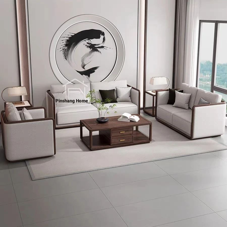 Modern Minimalist Solid Wood Sofa Set for Small Spaces - Affordable Fabric Sofa with Storage in New Chinese Style for Living Room