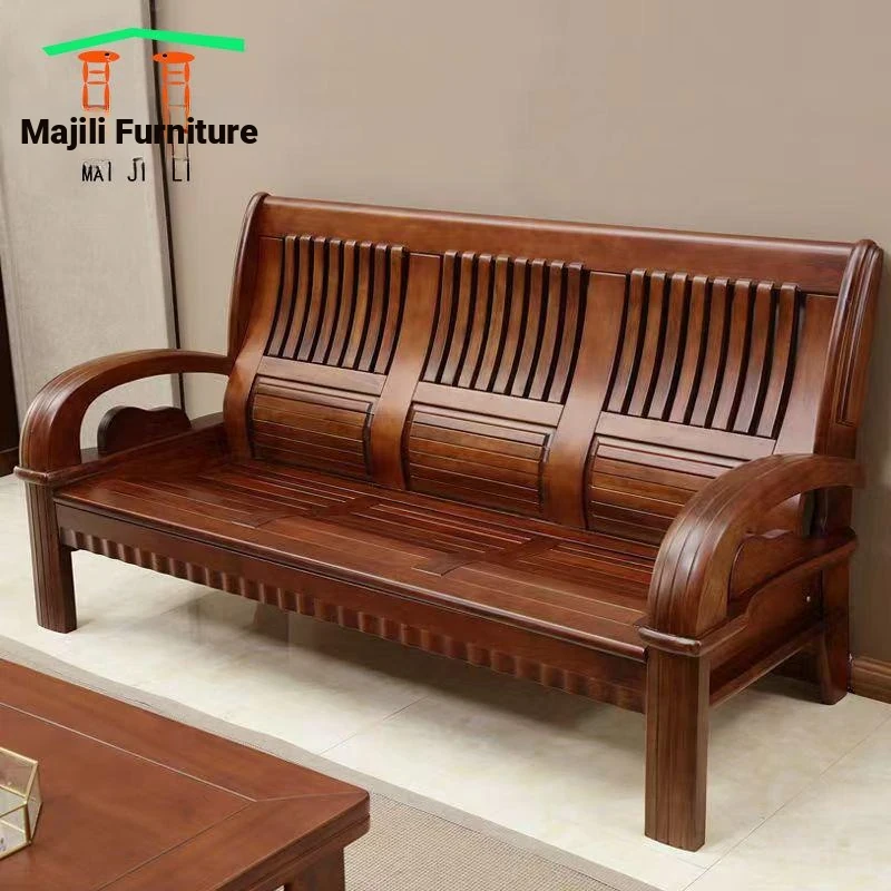Antique-Style Solid Wood Sofa Set in Red Wood - Crafted from Golden Pear and African Pineapple Wood, Easy to Assemble, Direct Factory Sale with Free Shipping!