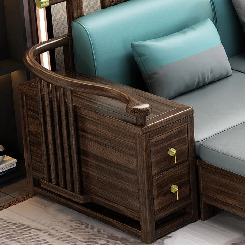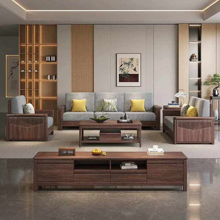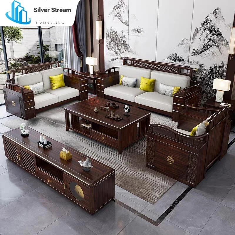 Luxury Solid Wood Sofa Set in Modern New Chinese Style - Ideal for Living Rooms of All Sizes, Crafted from Premium Wenge Wood for a Chic and Elegant Home Décor.