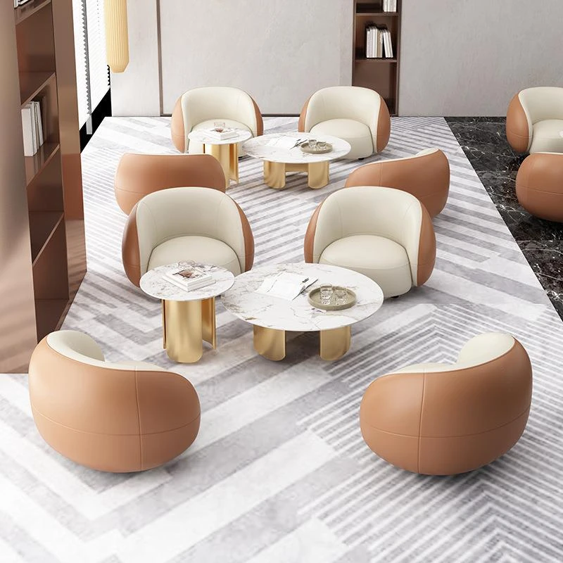 Elegant Faux Leather Sofa Set for Sales Offices and Hotel Lobbies - Perfect for Business Meetings, Beauty Salons, and Leisure Reception Areas. Stylish and Comfortable Seating for Professional Environments.