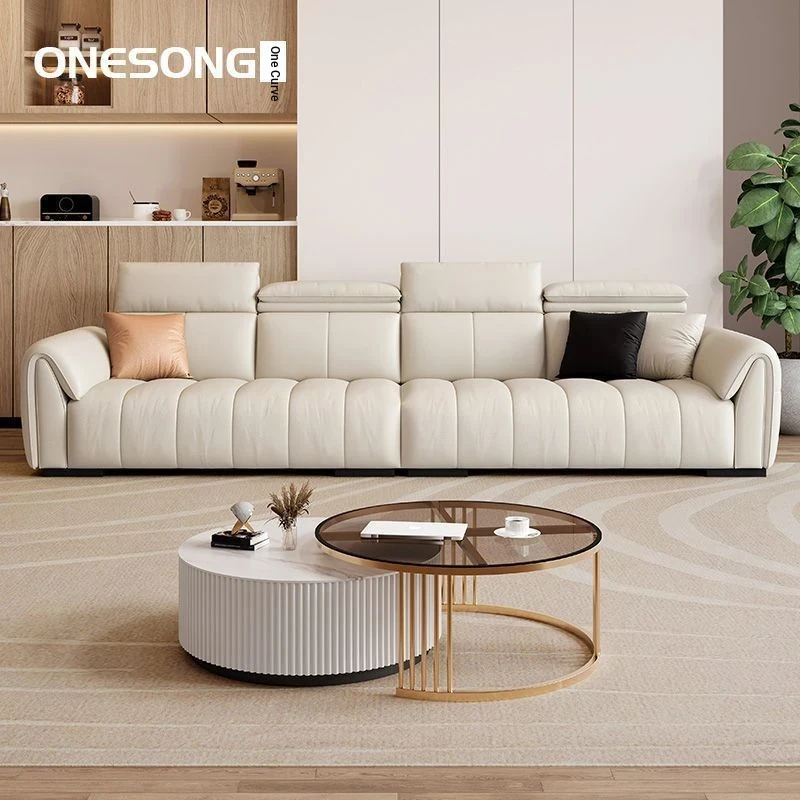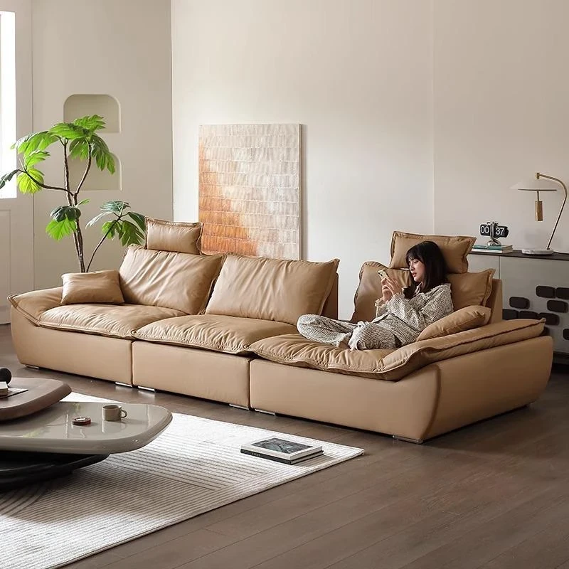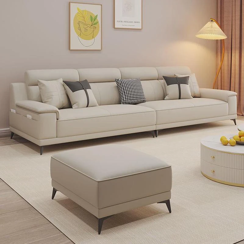 New Minimalist Cream Cat Paw Leather Sofa for Small Living Rooms - Scandinavian Modern Design, Easy Maintenance, No Wash Required