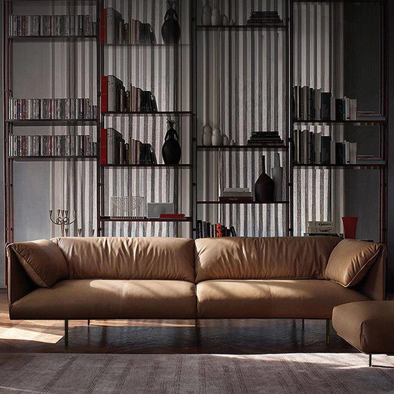 Italian Minimalist Genuine Leather Sofa for 3 - Modern Simple Design for Small to Medium Living Rooms and Bedrooms - High-Quality Top Grain Cowhide Sofa Set
