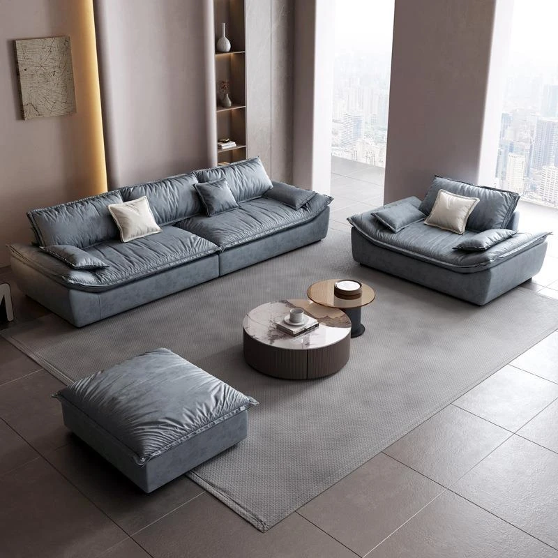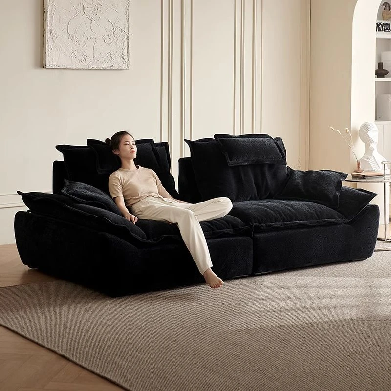 Italian Modern Sailboat Sofa – Extra Wide Deep Seat with Adjustable Backrest, Luxurious Black Cloud Fabric for Your Living Room Comfort