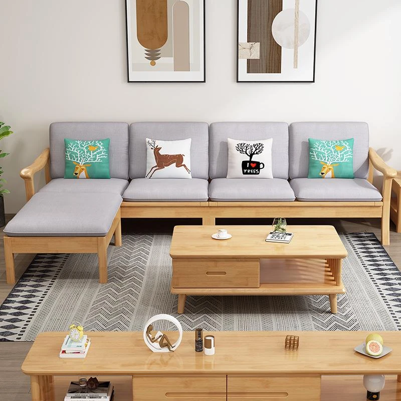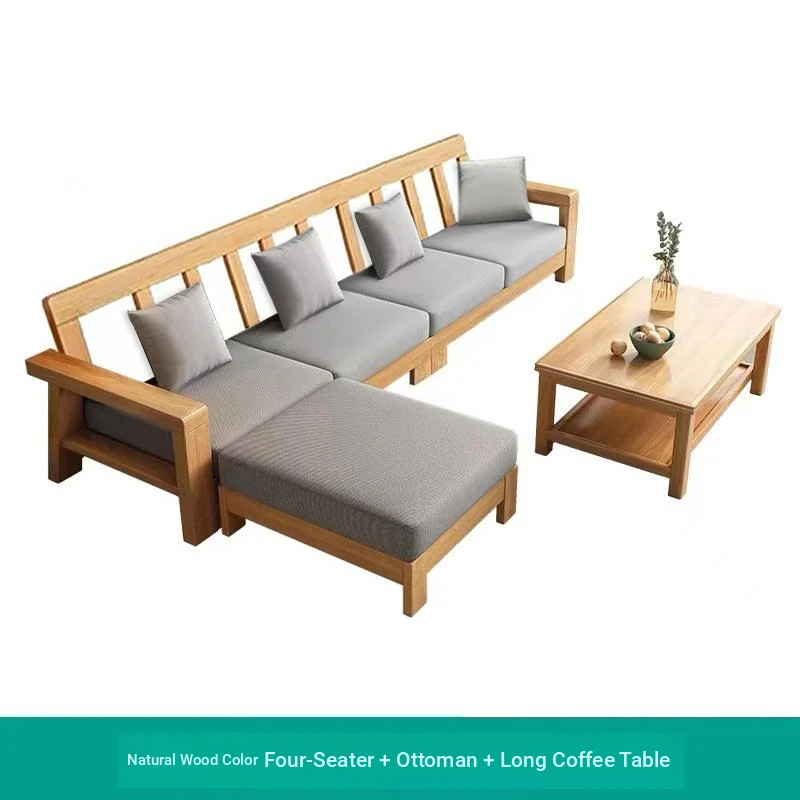 Scandinavian Solid Wood Sofa Set - Modern Minimalist Design, Comfortable Natural Wood, 123cm Winter & Summer Dual-Use Living Room Combo