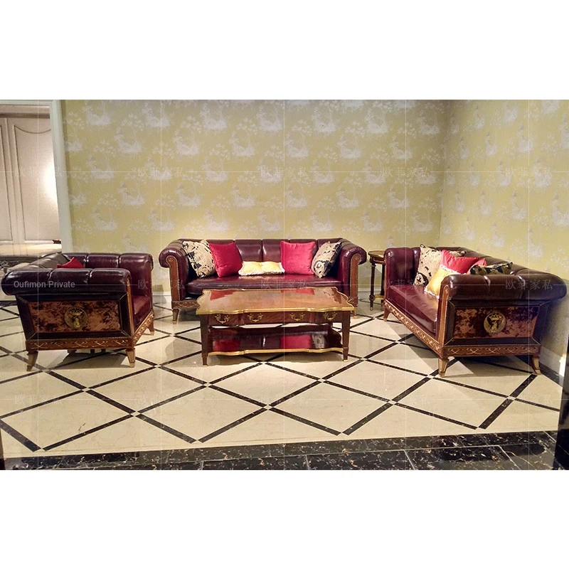Alexandria Luxury European Style Genuine Leather Sofa Set - French Neoclassical Living Room Furniture, Complete English Sofa Collection for Elegant Interiors