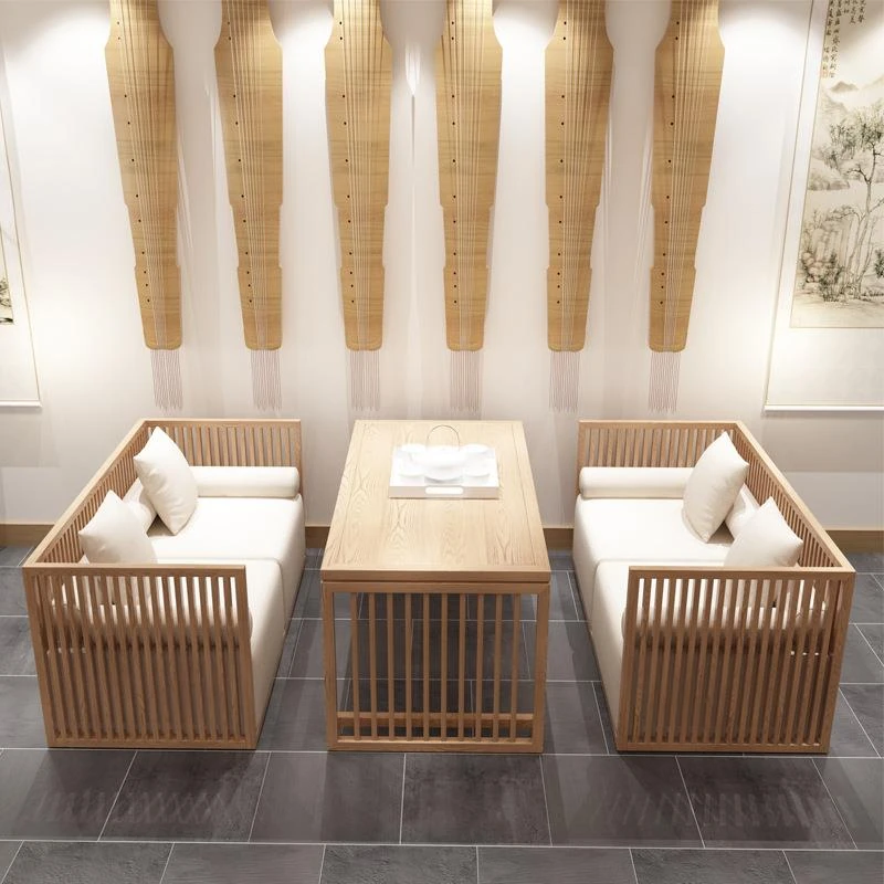 Modern Chinese Zen Sofa and Tea Table Set - Elegant Solid Wood Furniture for Hotels, Villas, and Guesthouses - Perfect for Tranquil Spaces and Stylish Gatherings