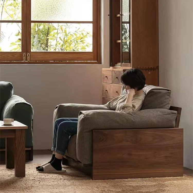【Discounted Price】North American Black Walnut Upholstered Sofa - Stylish Solid Wood Cherry Furniture for Your Living Room
