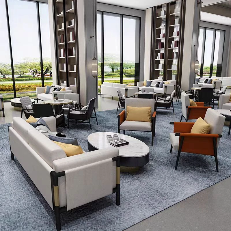 Nordic Style Hotel Lobby Reception Sofa Set - Elegant Leather Sofa and Table Combo for Office Business Meetings and Guest Reception