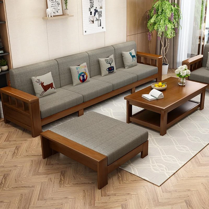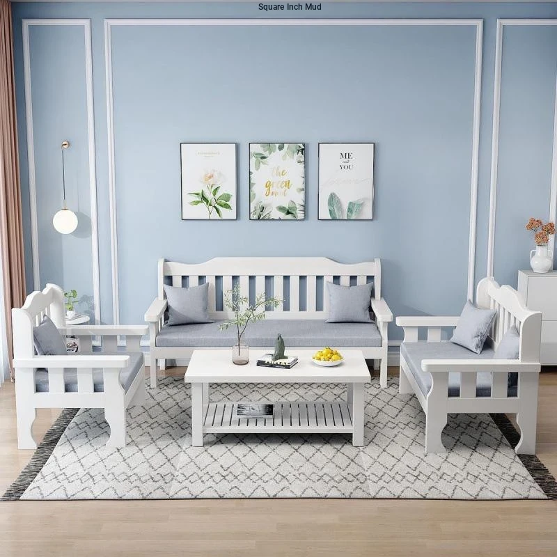 Solid Wood Sofa Set - Modern 123 Combination for Living Room, Versatile for Winter and Summer, Ideal for Small Spaces with Storage Solutions
