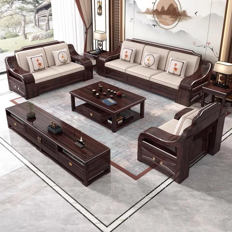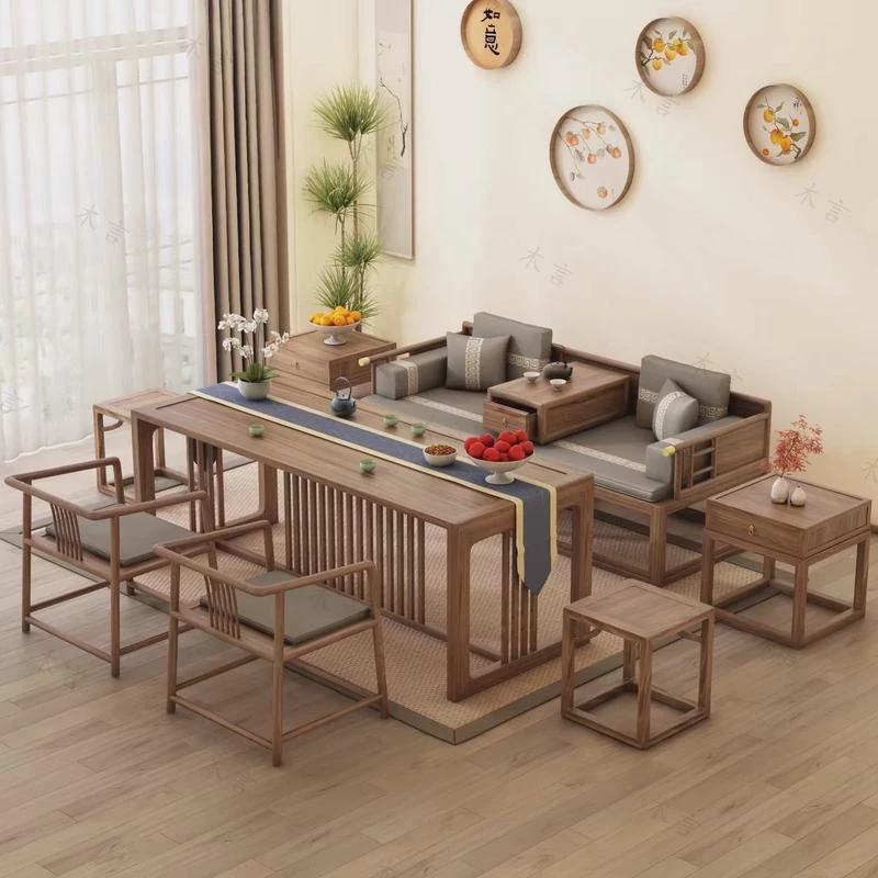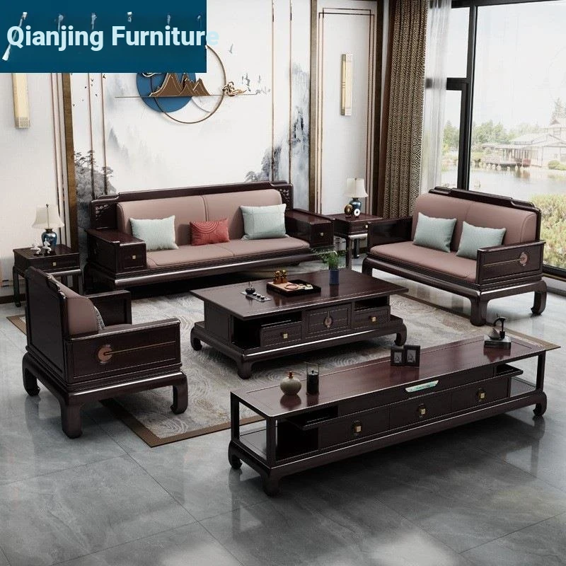 Modern Minimalist New Chinese-Style Solid Wood Sofa Set - Complete Furniture for Classical Chinese Living Rooms, Ideal for Large and Small Spaces