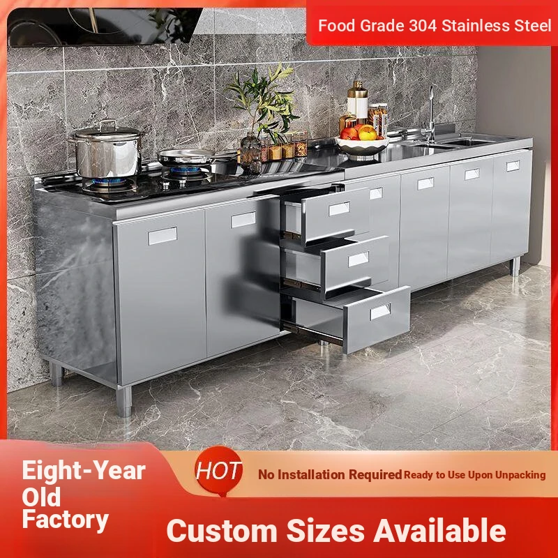 304 Stainless Steel Kitchen Cabinet with Integrated Simple Stove - Ideal for Rental Homes, Storage and Organization Solution for Dishes, Includes Sink Cabinet for Home Use