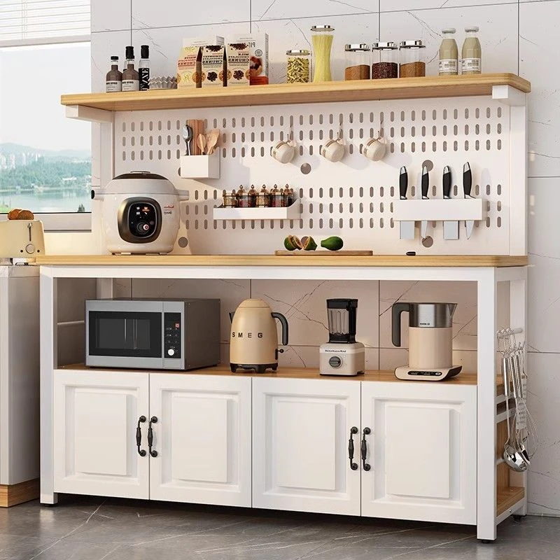 Multi-functional Kitchen Storage Rack with Pegboard - Versatile Operation Table and Dining Side Cabinet, Perfect for Organizing Bowls and Kitchen Essentials, Space-saving Multi-layer Design