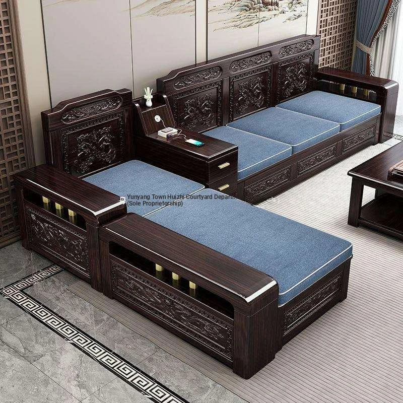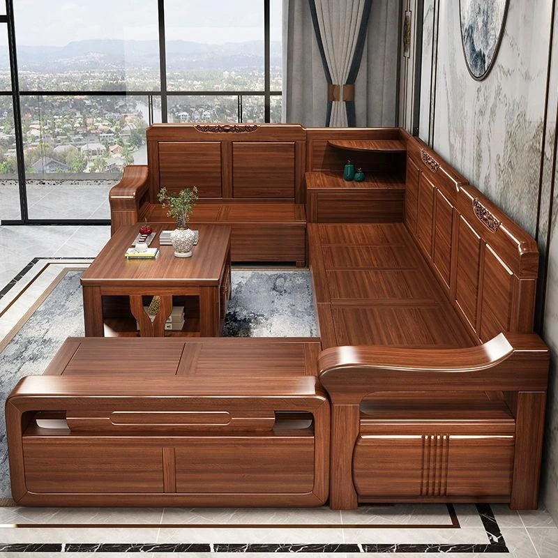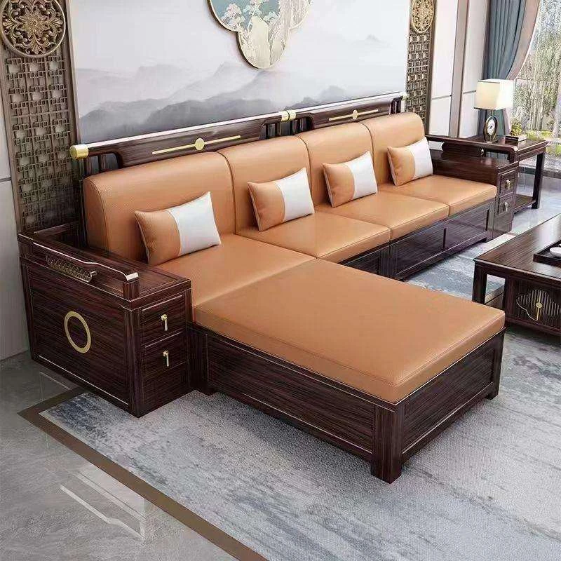 Modern Chinese Style Solid Wood Sofa Set with Corner Storage for Small Living Rooms - Elegant and Functional Design for Contemporary Homes