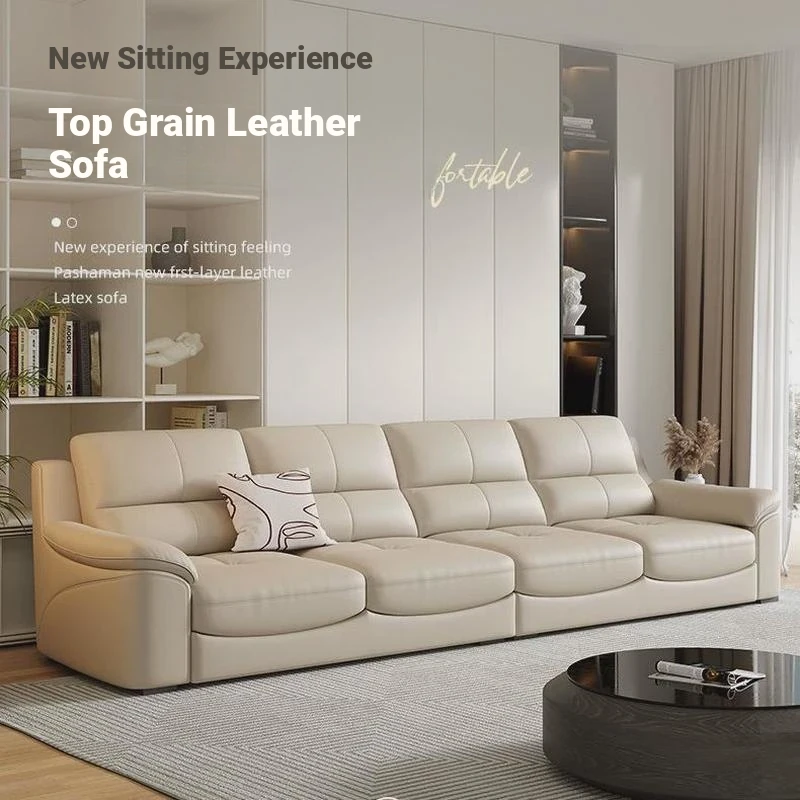 Genuine Leather Sofa - Modern Minimalist Design for Living Rooms, Featuring Top-Grain Cowhide, Perfect for Any Home Size and Style