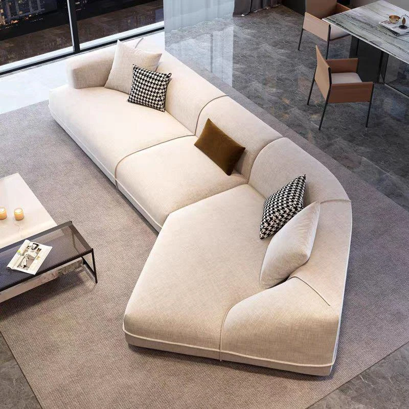Understanding Wood Italian Minimalist Cotton-Linen Fabric Sofa - New Creamy Style Modern Simplistic Asymmetrical Corner Sofa for Living Room
