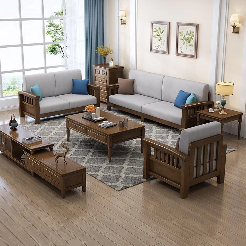 Modern American Solid Wood Sofa Set - Stylish Fabric Corner Chaise Lounge for Small Spaces - Perfect Minimalist Furniture for Your Living Room