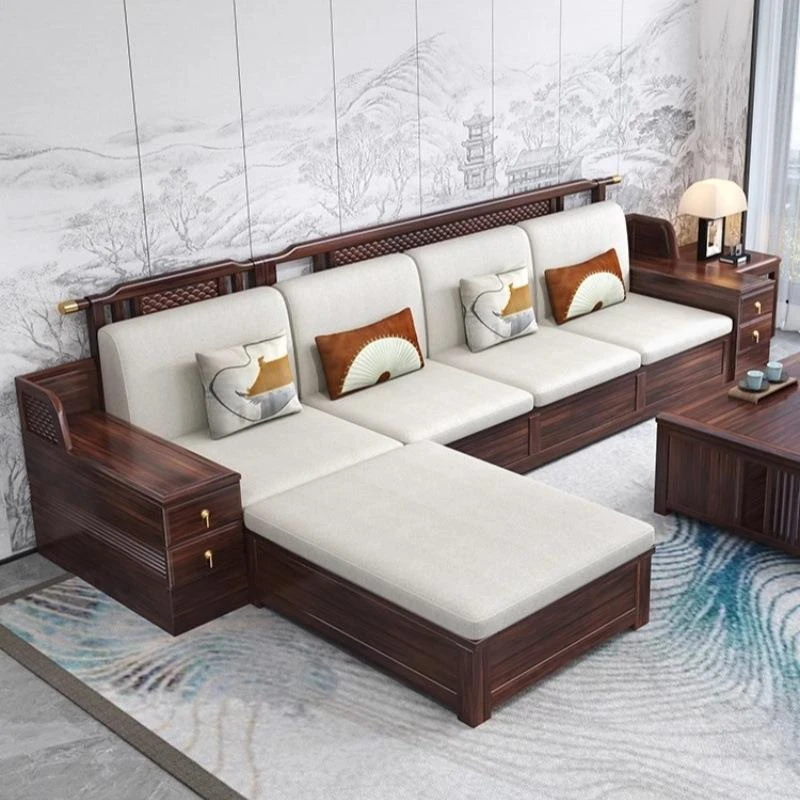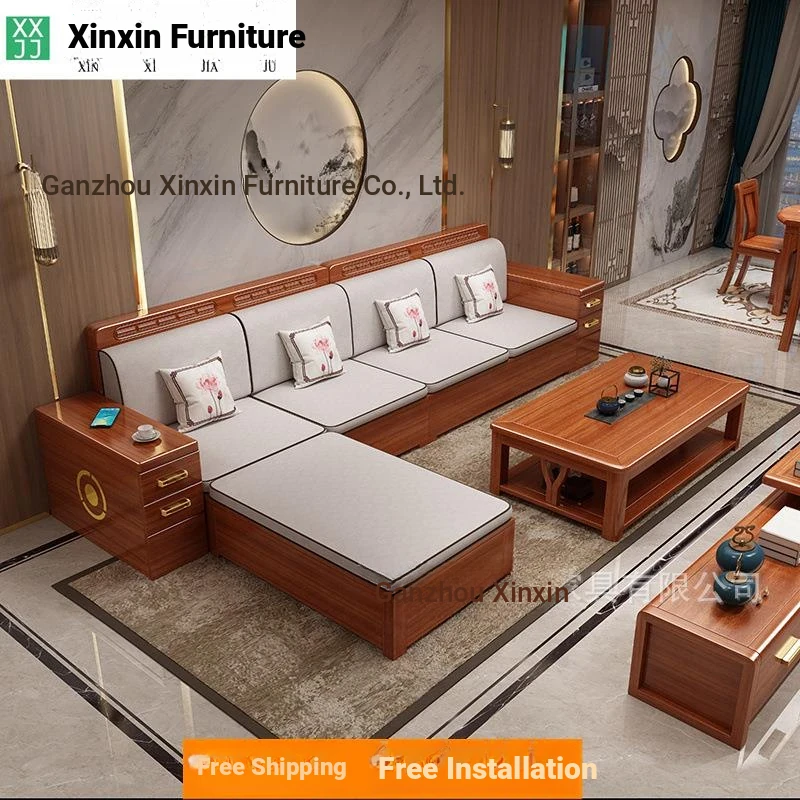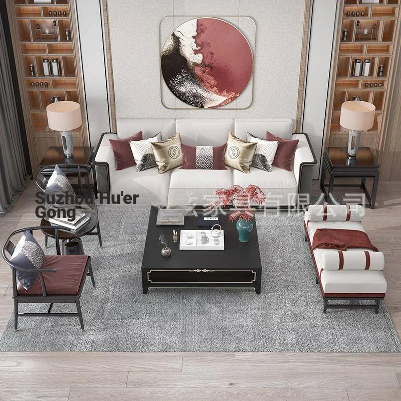 New Chinese Style Solid Wood Sofa - Elegant Living Room Furniture for Showrooms, Model Homes, and Boutique Hotels - Perfect for Your Villa or Clubhouse