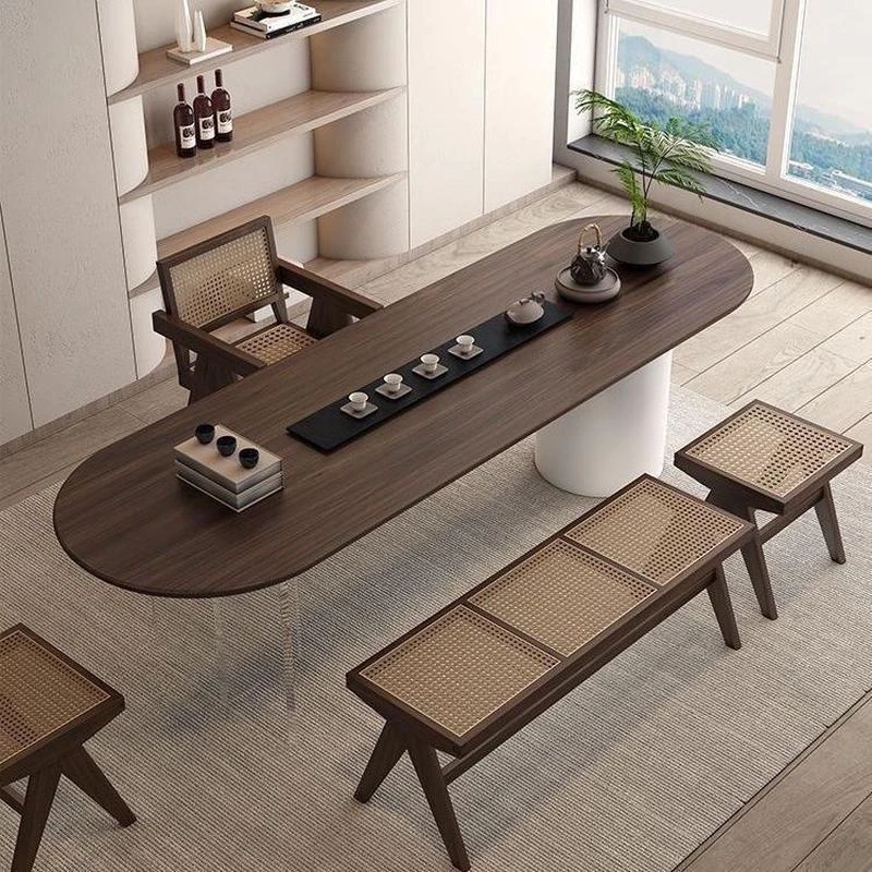 Modern Wabi-Sabi Tea Table and Chair Set - Solid Wood Living Room Tea Station for Home Office, New Chinese Style Natural Wood Balcony Furniture