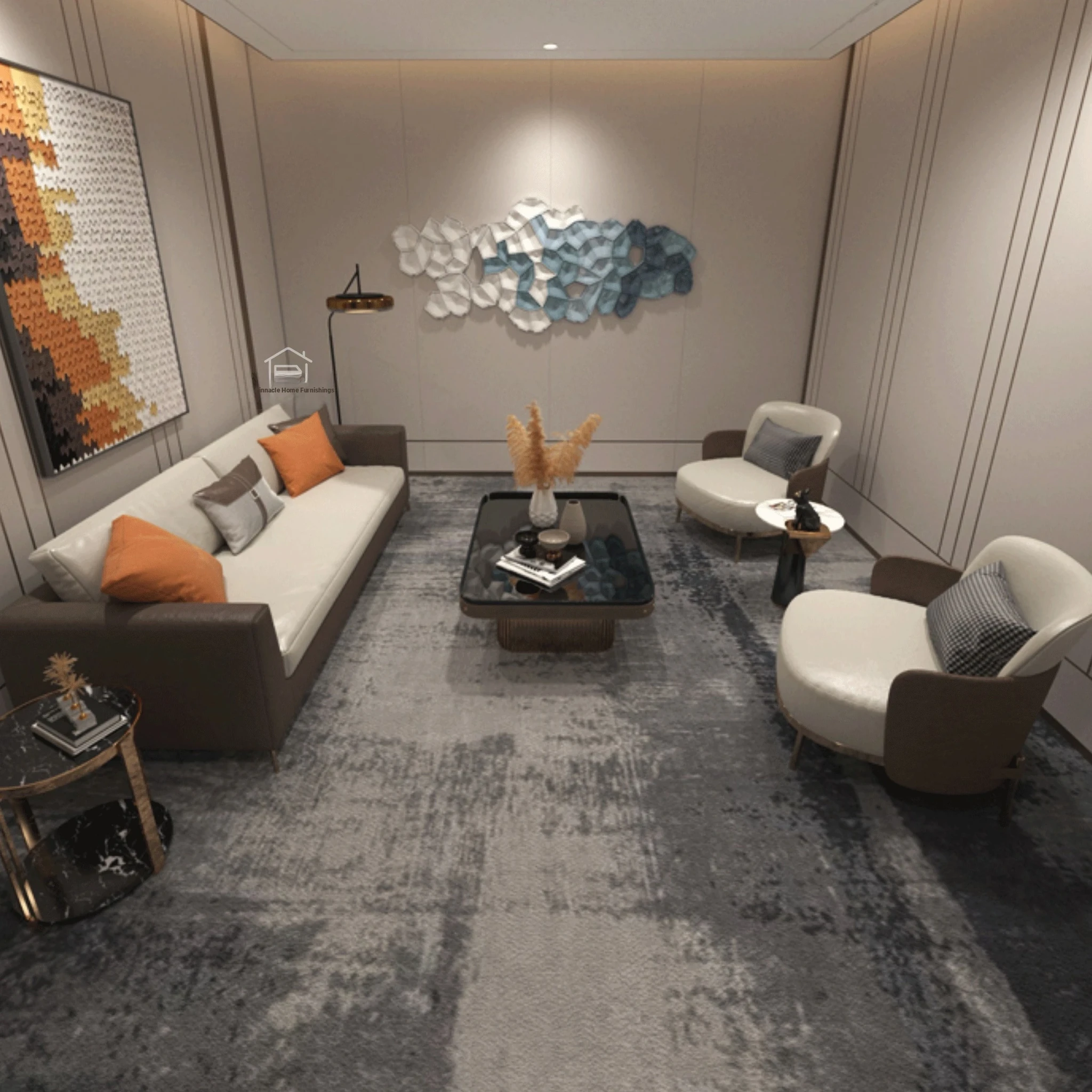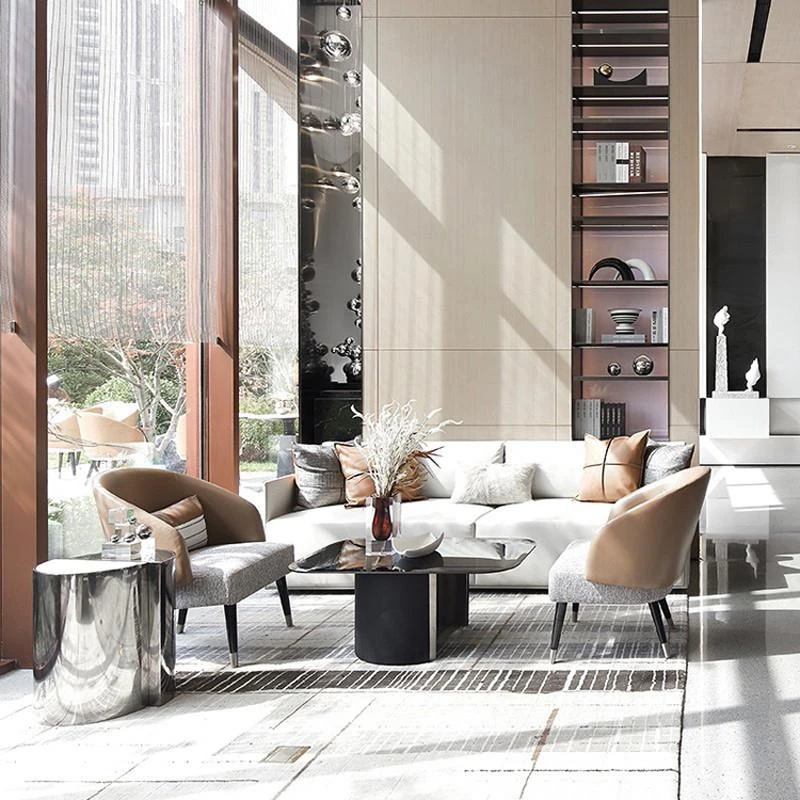 Modern Minimalist Luxury Sofa Set for Real Estate Reception Area – Stylish and Comfortable Furniture for Showroom Living Rooms