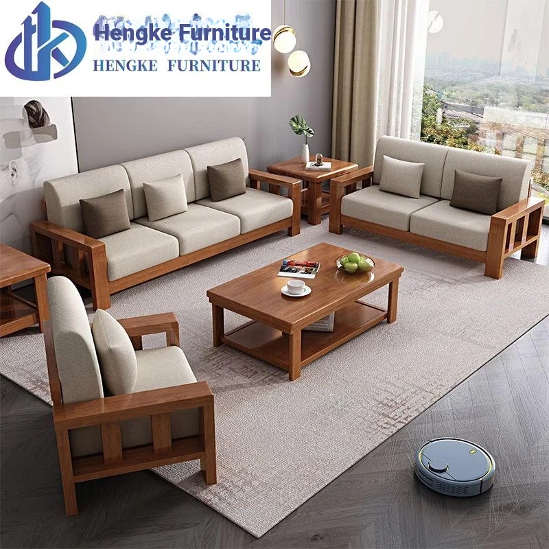 Modern Simple Solid Wood Sofa Set – New Chinese Style Living Room Sofa for Small Spaces, Featuring 3+2+1 Fabric Design for Cozy and Stylish Interiors.