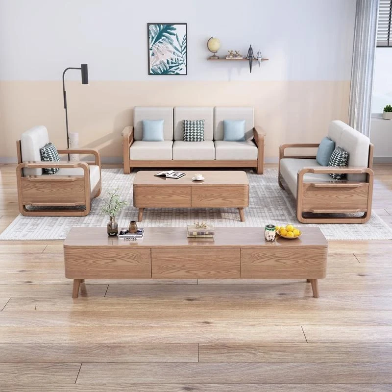 Nordic Ash Wood Solid Sofa Set - Modern Minimalist Lightweight Luxury Fabric Chaise Lounge for Living Room