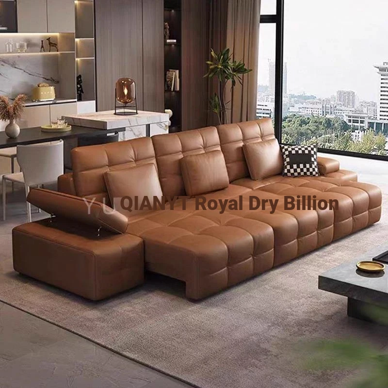 G7J 2024 New Italian Style Genuine Leather Sofa - Modern Minimalist Design for Small Living Rooms, Sleek and Stylish Upholstery