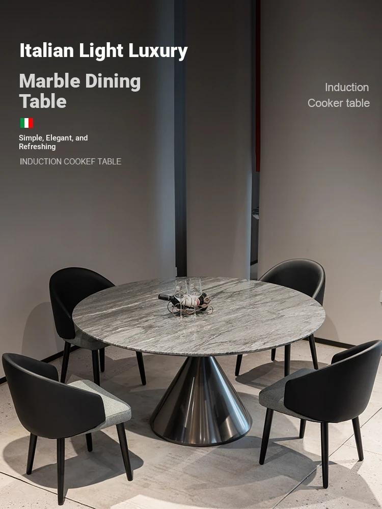 Elegant Round Marble Dining Table in Bluish Gray - Modern Minimalist Luxury for Villas, Perfect for Home Dining Experience