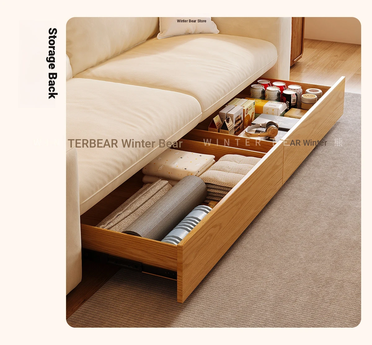 2024 New Arrival Multifunctional Japanese Style Small Space Sofa - Wooden Frame, Fabric Upholstery, and Storage Solution for Your Living Room