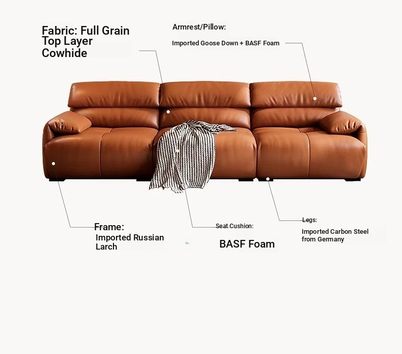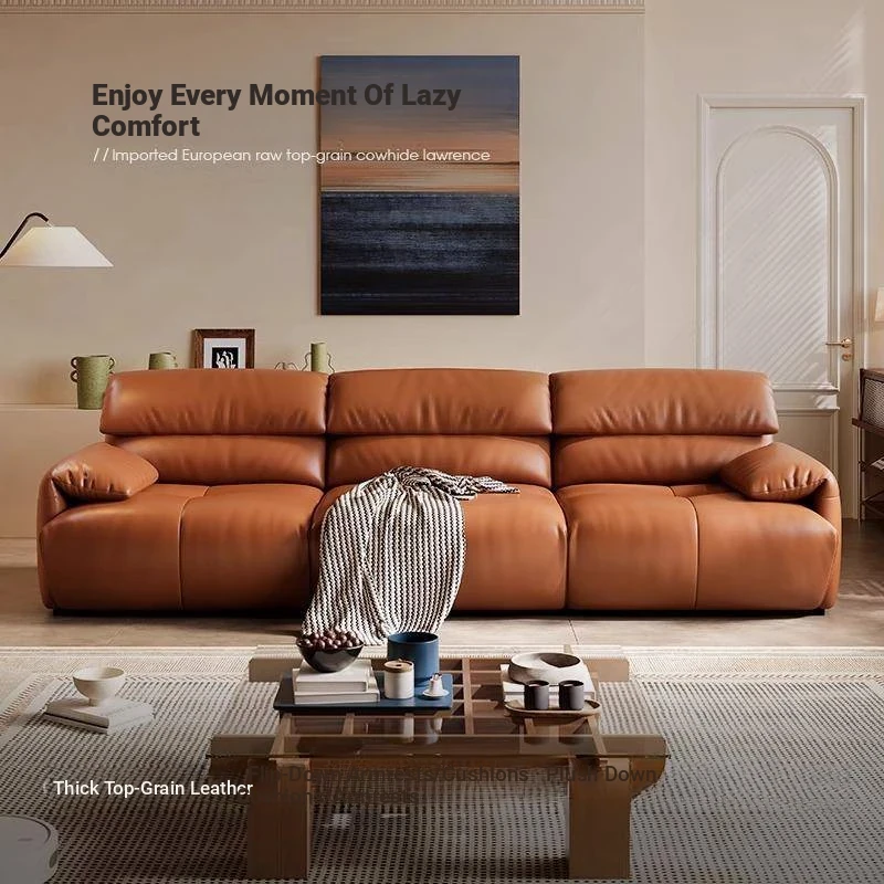 2025 New Italian Minimalist Genuine Leather Sofa for Small Living Rooms – Sleek Designer Elephant Ear Straight Sofa for Modern Spaces