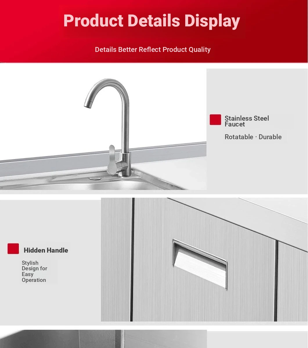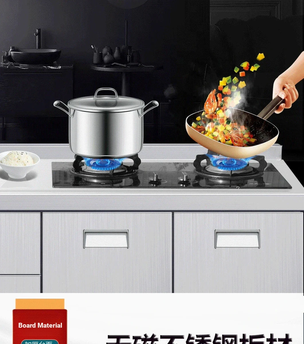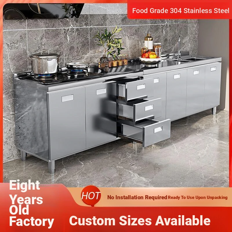 304 Stainless Steel Kitchen Cabinet with Integrated Simple Stove - Ideal for Rental Homes, Storage and Organization Solution for Dishes, Includes Sink Cabinet for Home Use