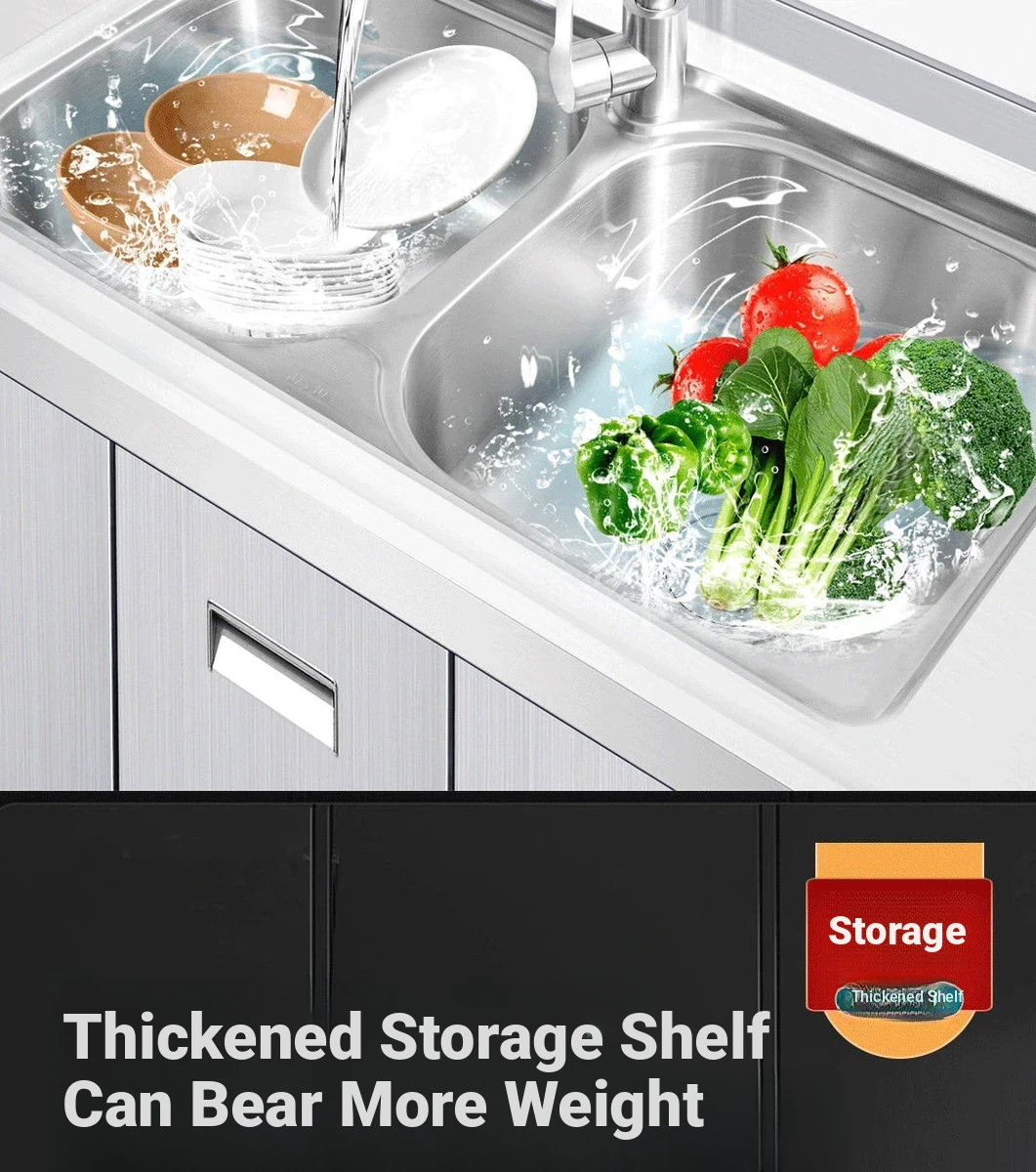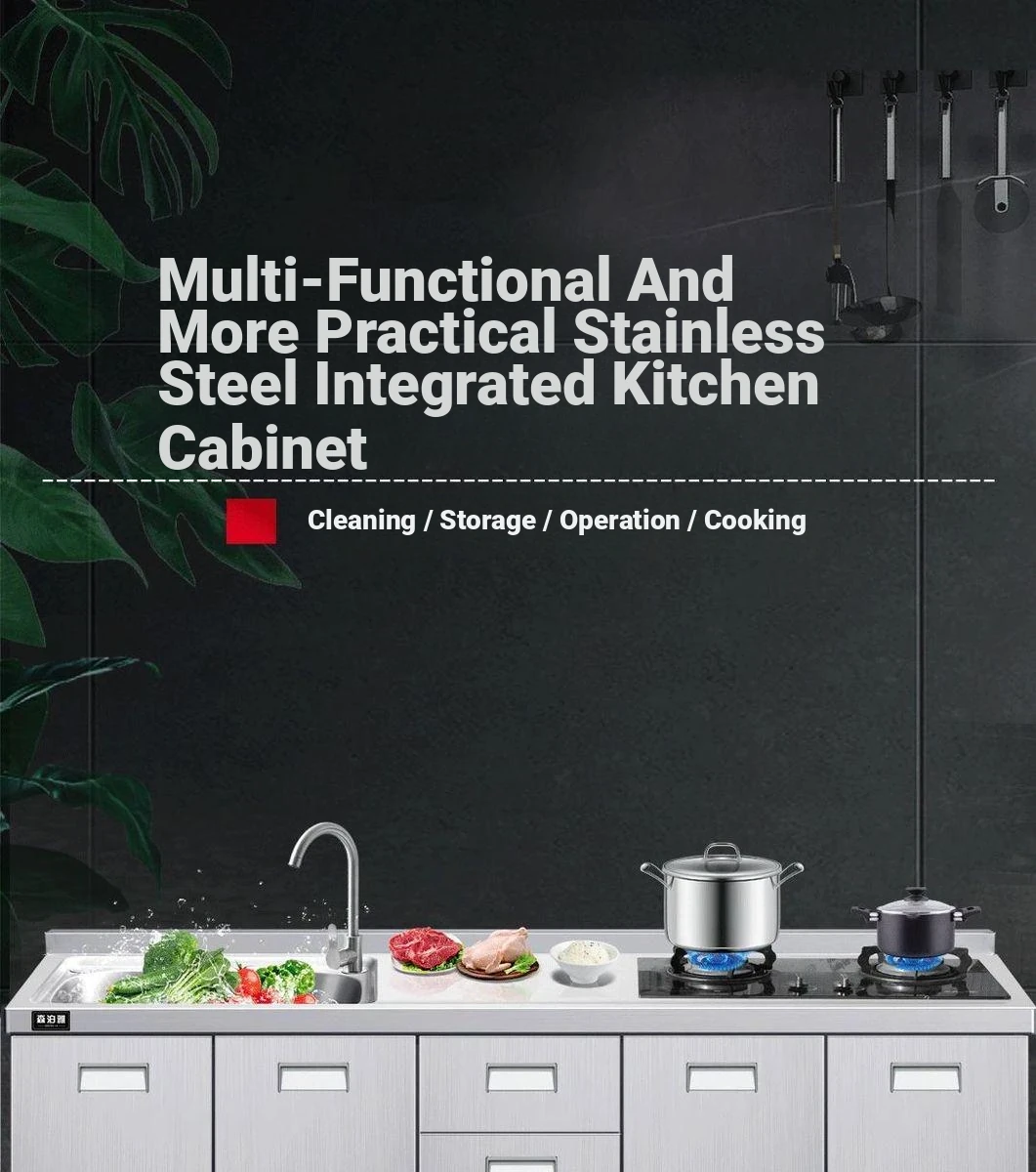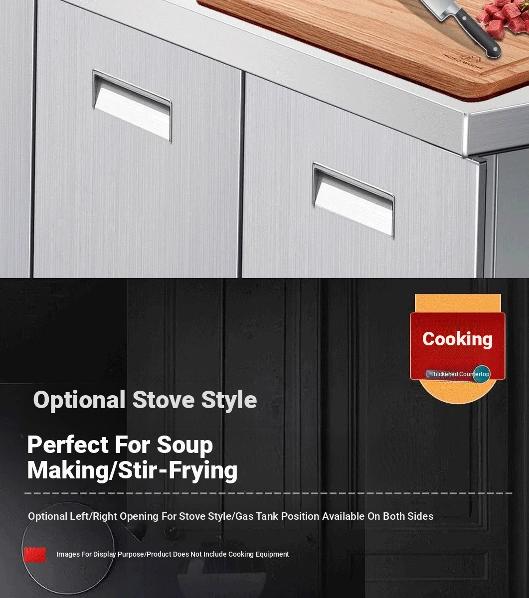 304 Stainless Steel Kitchen Cabinet with Integrated Simple Stove - Ideal for Rental Homes, Storage and Organization Solution for Dishes, Includes Sink Cabinet for Home Use