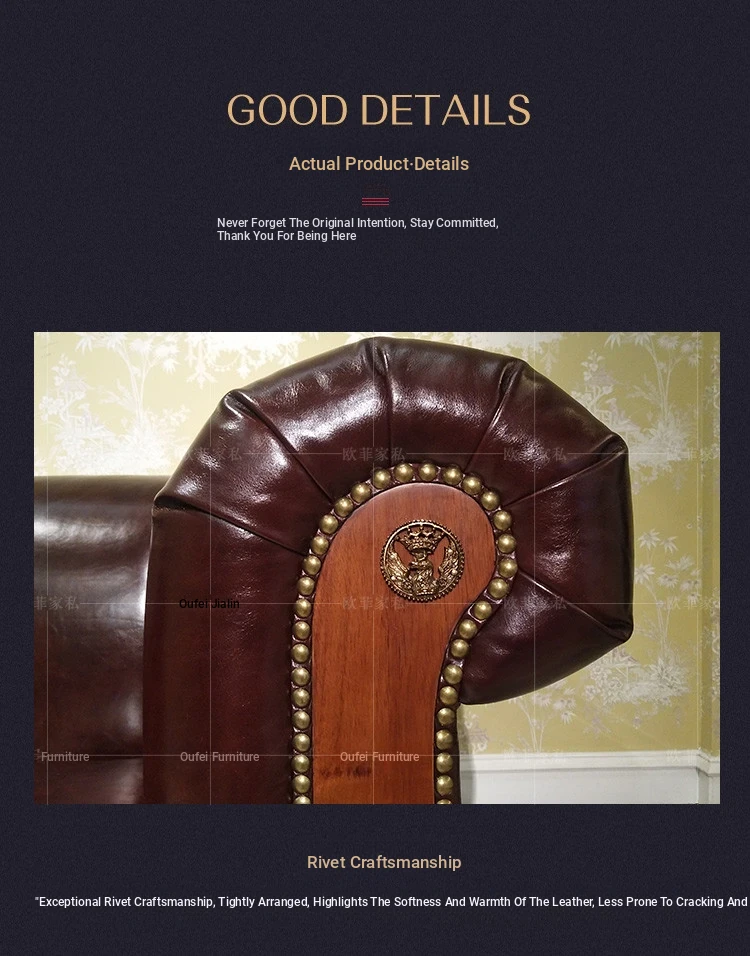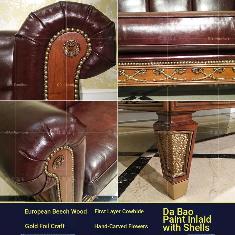 Alexandria Luxury European Style Genuine Leather Sofa Set - French Neoclassical Living Room Furniture, Complete English Sofa Collection for Elegant Interiors
