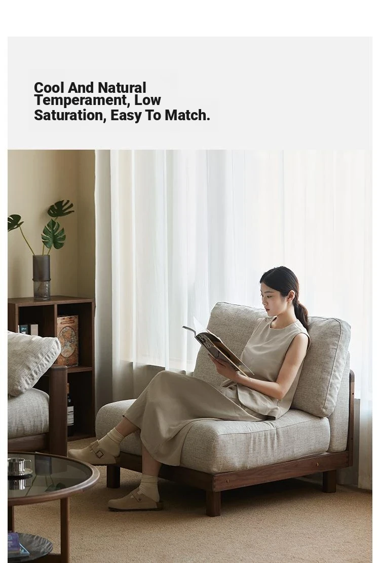 Chongjiang Furniture Single Sofa Chair - Modern Minimalist Upholstered Lazy Reading Chair in Walnut Wood, Perfect for Relaxation and Style