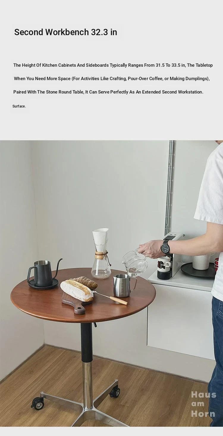 "Corner House Creamy White Round Table - Versatile Adjustable Height Dining Table for Home Use, Perfect as a Casual Side Table"