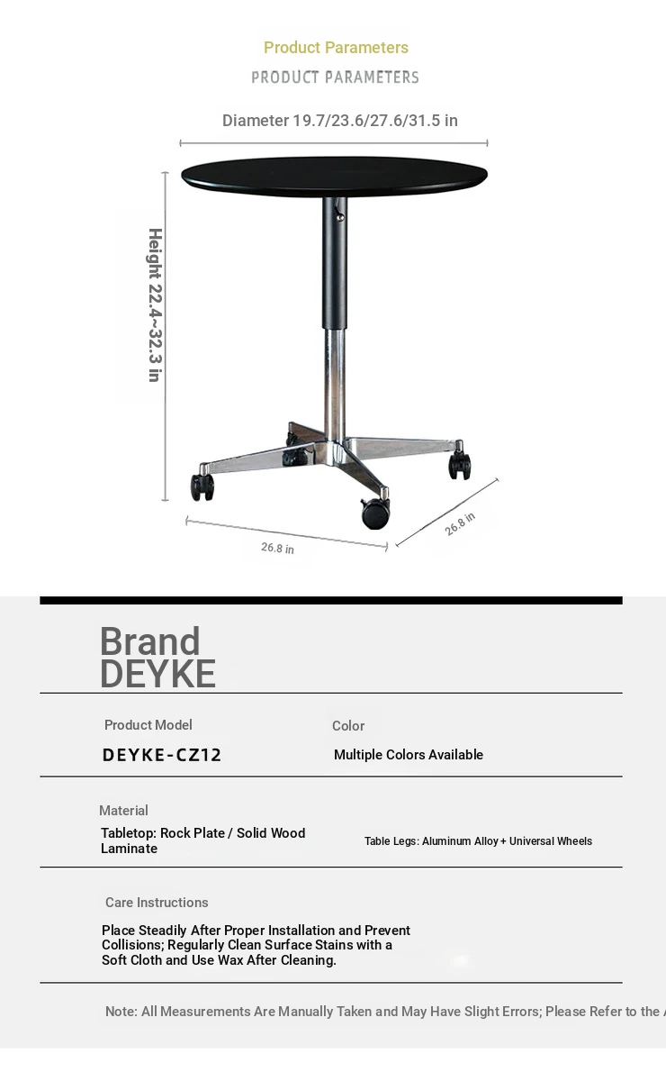 Walnut color 60 diameter + black sleeve + silver feet can be raised and lowered