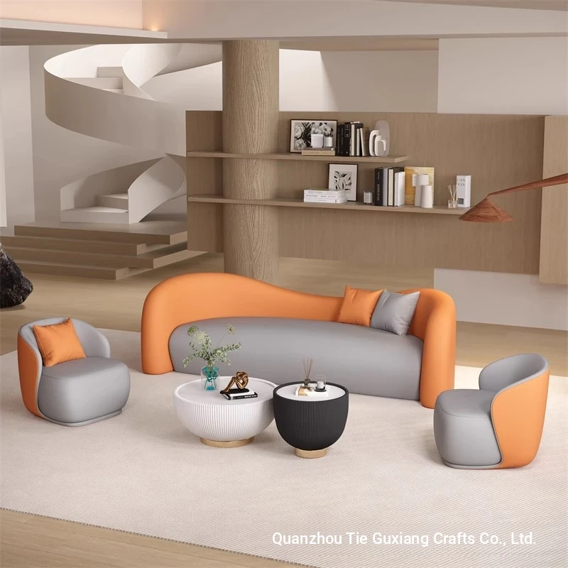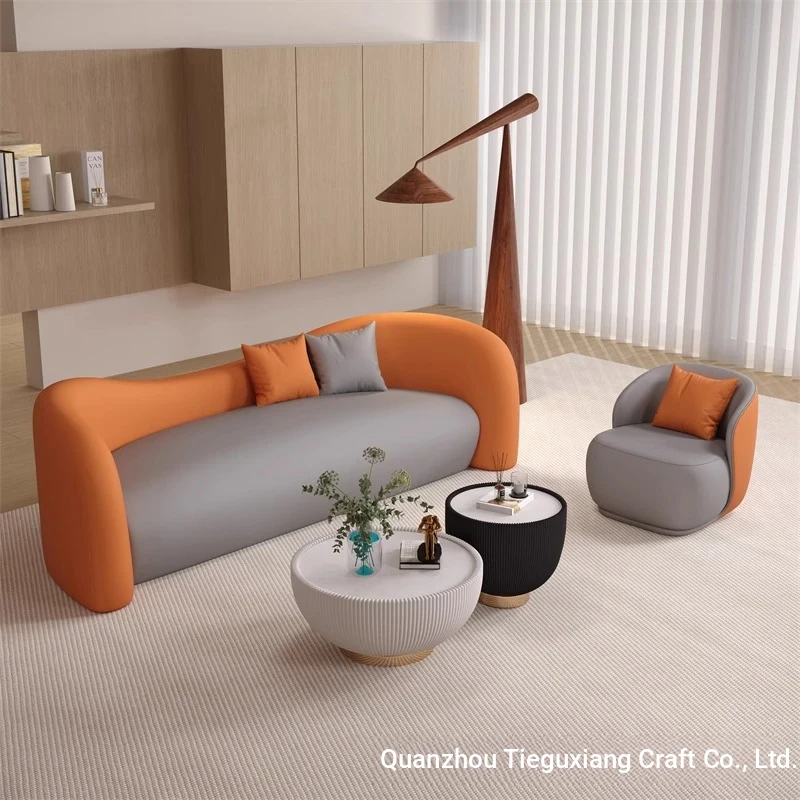 Single sofa + three sofa + coffee table combination (Orange + Gray)