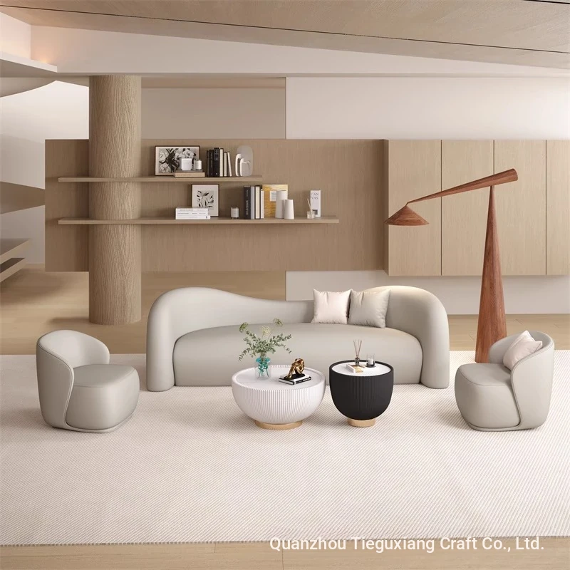 Single sofa + three sofa + tea table combination (Orange + Rice White)