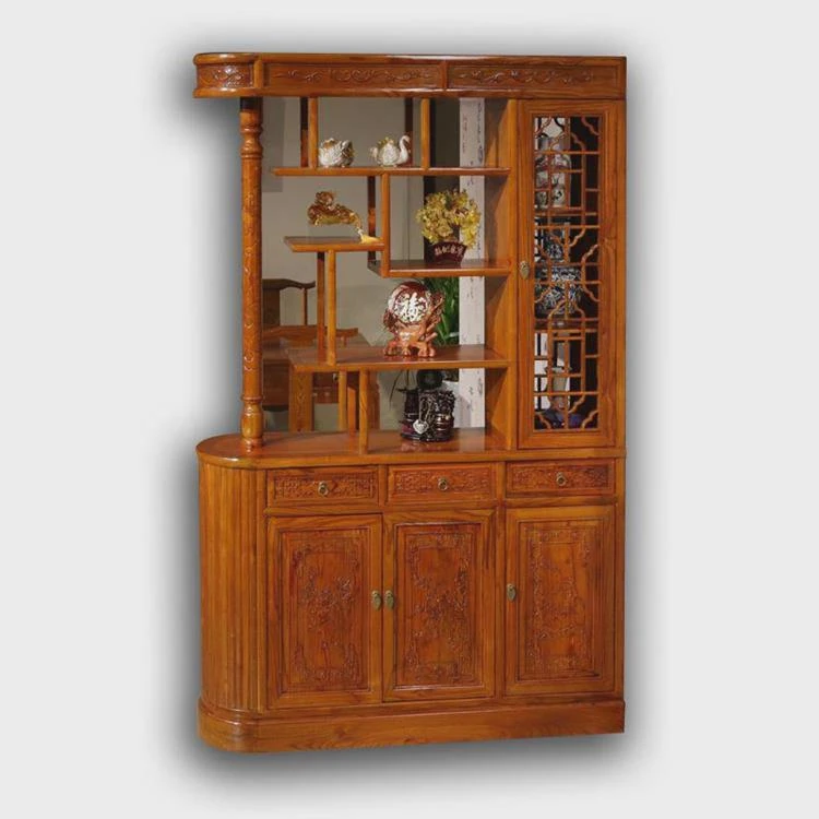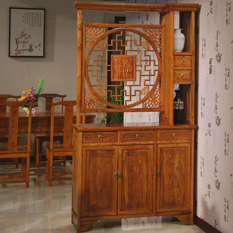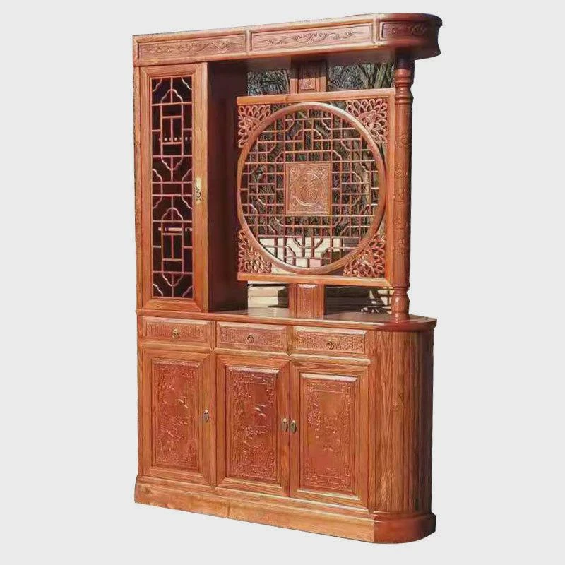 Elegant Chinese-Style Solid Wood Entryway Cabinet – Dual-Sided Carved Wine Display Screen & Shoe Storage – Perfect Living Room Partition & Space Saver – Clearance Sale!