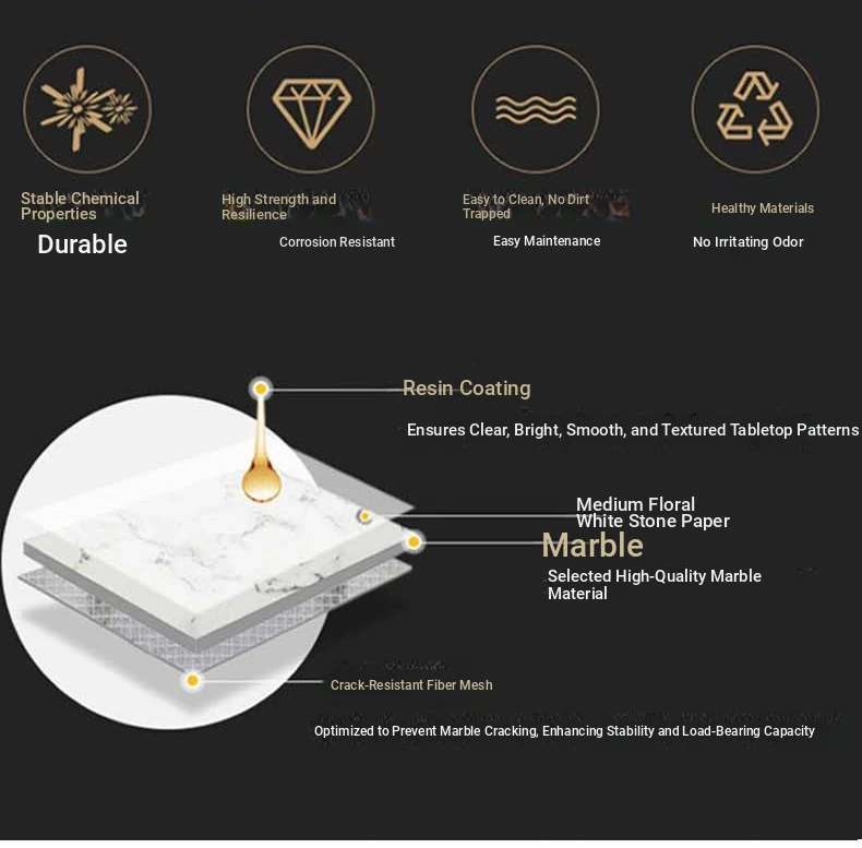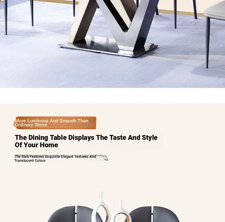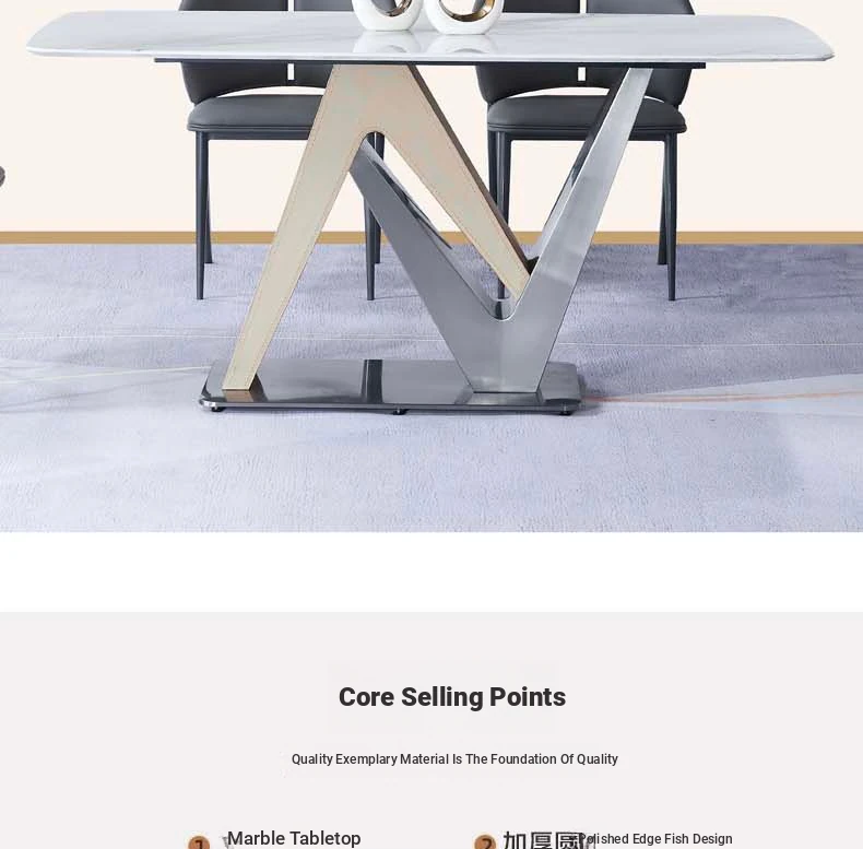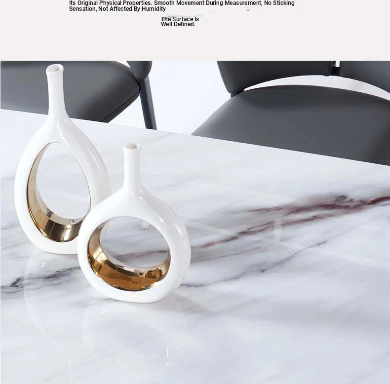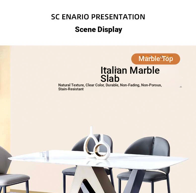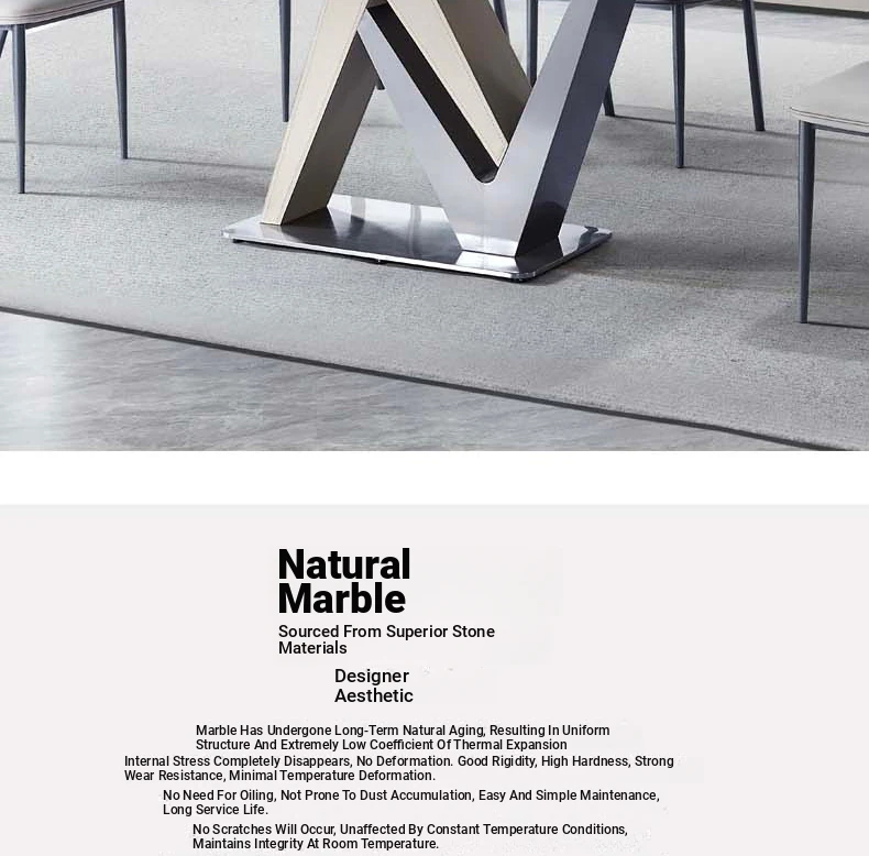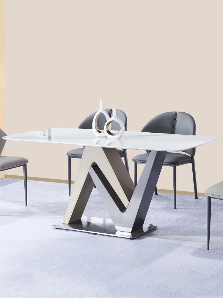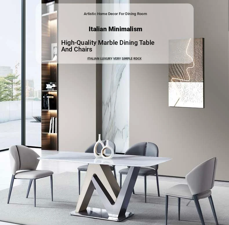 Elegant Marble Dining Table - Italian Minimalist Rectangular Design for Home Use, Perfect for Small Spaces, Featuring a Polished Stainless Steel Finish