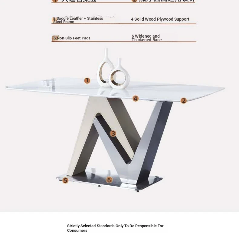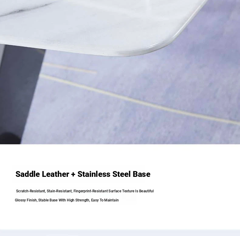 Single dining table (saddle skin + stainless steel feet + marble countertop)