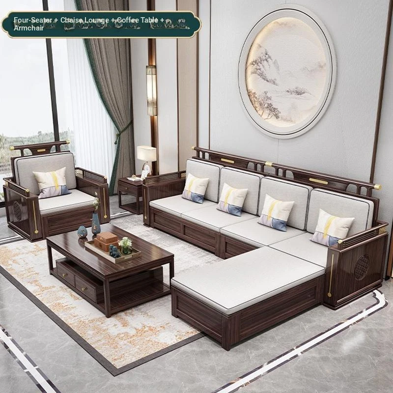 Elegant Solid Wood Sofa Set in Wenge Finish - New Chinese Style 1-2-3 Zen-Inspired Combination for Minimalist Living Rooms, Perfect for All Sizes - Comfortable Fabric Upholstery Furniture