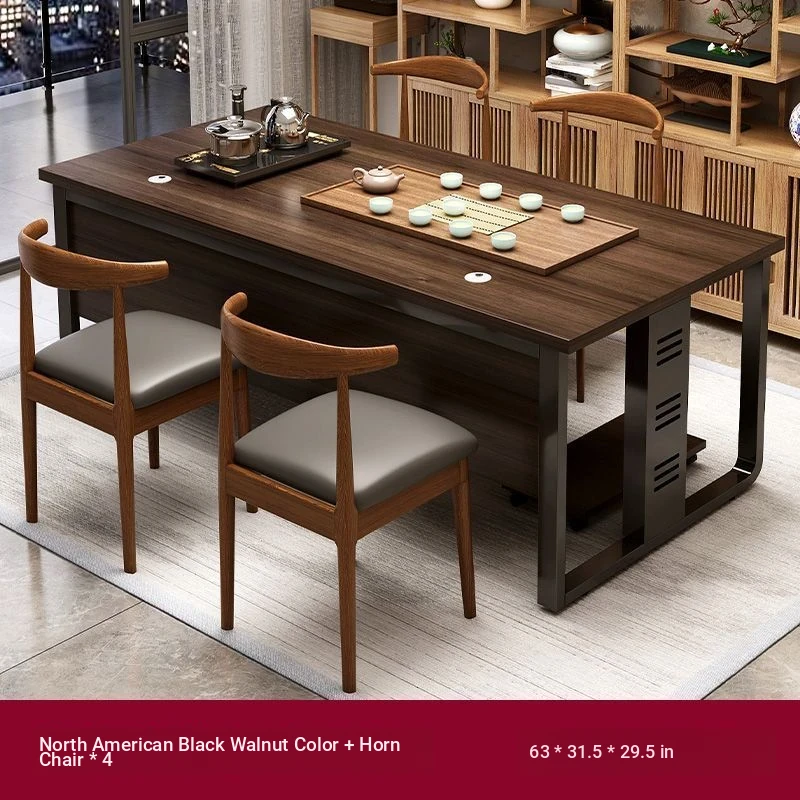 [One Table and Four Chairs] Black Walnut Color 62.99 in