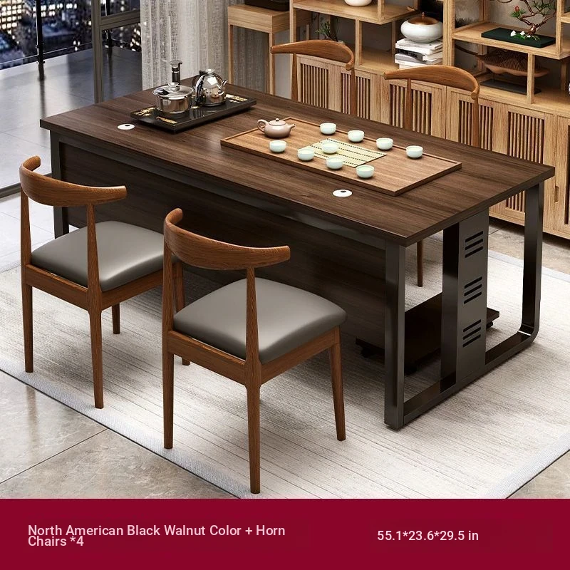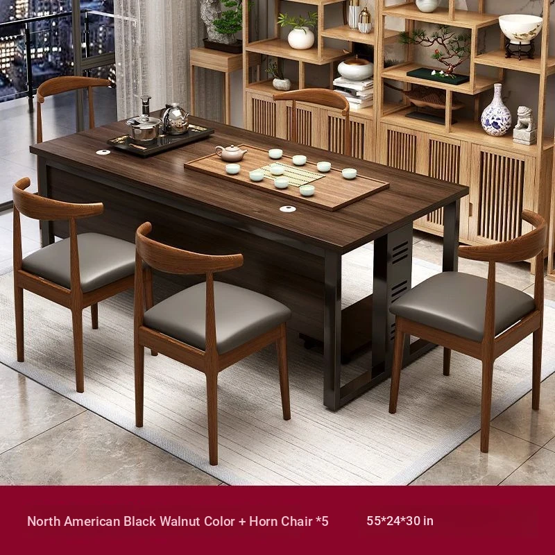 [One Table and Five Chairs] Black Walnut Color 55.12 in